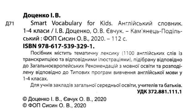 англійська мова 1-4 клас smart vocabulary for kids англійський словник 1100 слів та фраз