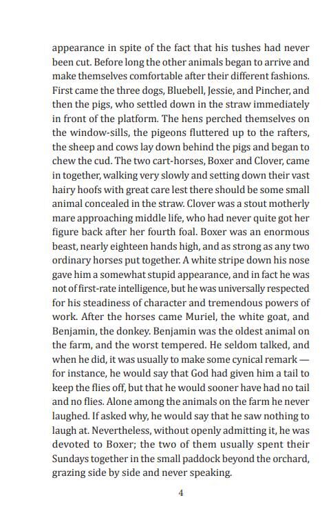 he English writer George Orwell (1903—1950) gained worldwide fame for his works written in the last years of his life. The political allegory «Animal Farm» depicts the rebirth of revolutionary principles and programs, the gradual transition from the ideas of general equality and the construction of utopia to dictatorship and totalitarianism.