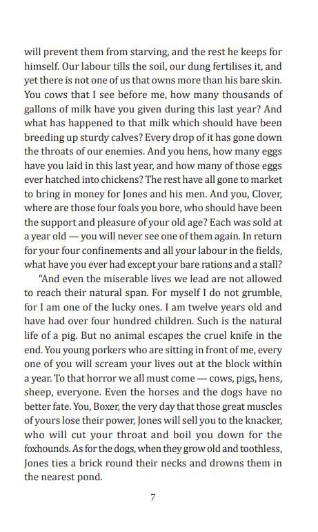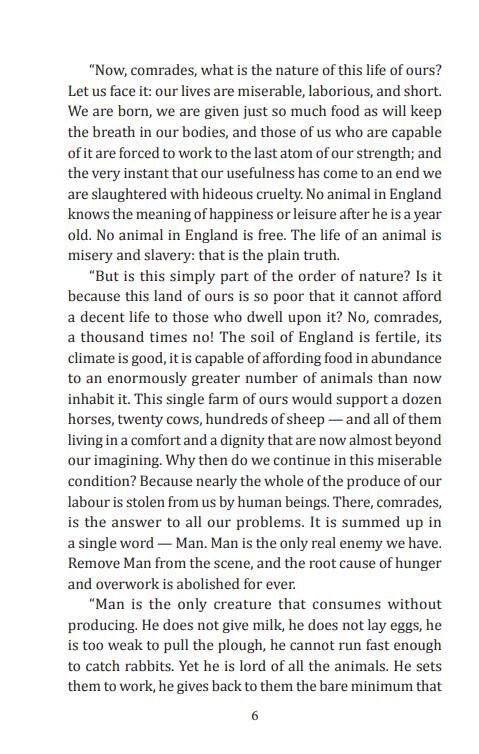 Англійський письменник Джордж Орвелл (1903—1950) набув всесвітньої слави завдяки творам, написаним в останні роки життя. Політична алегорія «Ферма тварин» змальовує переродження революційних принципів і програм, поступовий перехід з ідей загальної рівності і побудови утопії до диктатури і тоталітаризму.