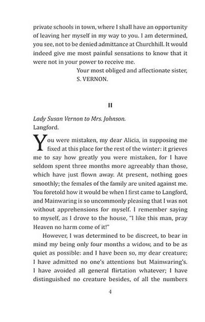 Charming Lady Susan Vernon is a widow, who seduces both single and married men alike. As she has been left in a financially precarious state due to the death of her first husband, she uses flirting to gain her objectives and maintain a semblance of her former opulent lifestyle. As a widow and a mother, her main goals are to quickly marry off her daughter Frederica to a wealthy man, and to marry someone even richer.