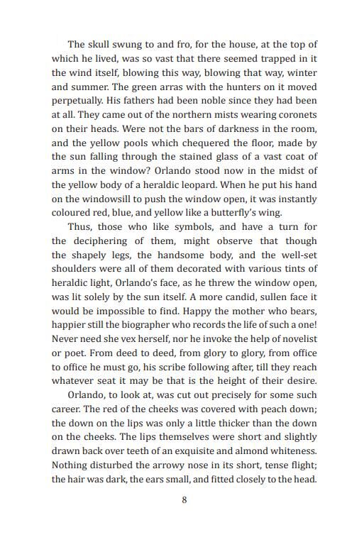 Orlando is a poet and English nobleman during the reign of Elizabeth I. He undergoes a mysterious sex change at the age of 30, and continues to live for over 300 years without aging. Throughout his/her life, Orlando meets famous figures in English literary history. Орландо — поет, англійський дворянин часів правління Єлизавети I. Він зазнає загадкової зміни статі у віці 30 років і продовжує жити понад 300 років, не старіючи. Протягом життя Орландо зустрічає відомих діячів англійської літературної історії. Рівень складності - Intermediate.