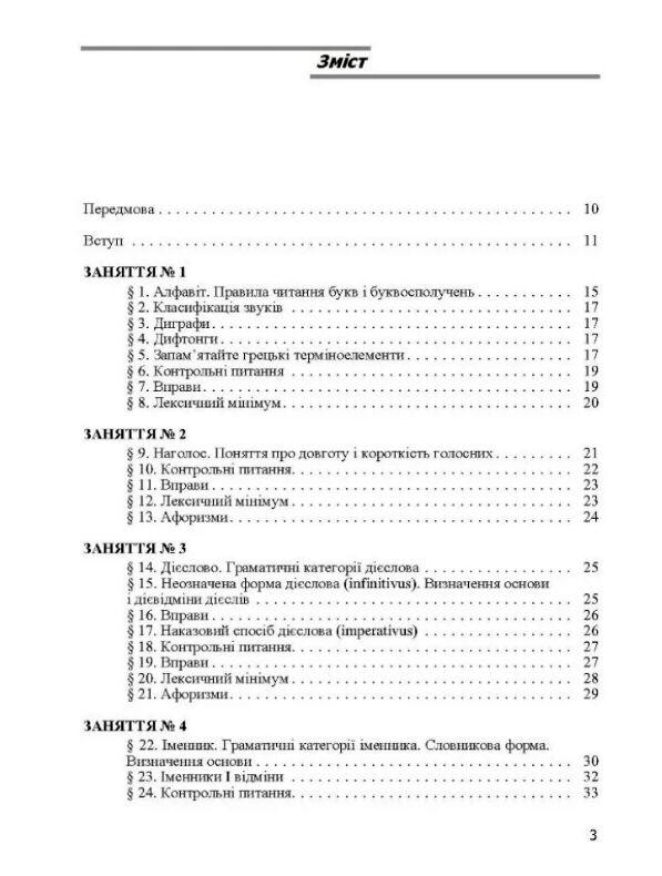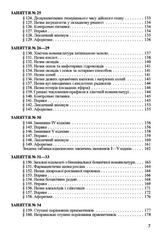 У підручнику наведено відомості з фармацевтичної термінології, номенклатури лікарських засобів, хімічних, ботанічних, фармакогностичних номенклатур, номенклатури лікарських форм. Розділи граматики латинської мови розглянуто в обсязі, достатньому для грамотного використання спеціальної термінології на практиці. Підручник містить алфавітний покажчик ботанічних назв лікарських рослин, зразки модульних контрольних робіт, тестові завдання для самоперевірки, латинсько-український та українсько-латинський словники.