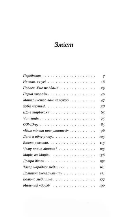 Педіатриня Наталія Макодрай з гумором і турботою розказує про найважливіші моменти, з яких складається її робота. Поміж описом свого повсякдення вона дає відповіді на найпоширеніші запитання батьків: чому на грудному вигодовуванні не варто відмовляти собі у філіжанці кави та круасані, чи треба чистити той єдиний найперший зуб і чому варто довіритися медикам, а не народним методам лікування.