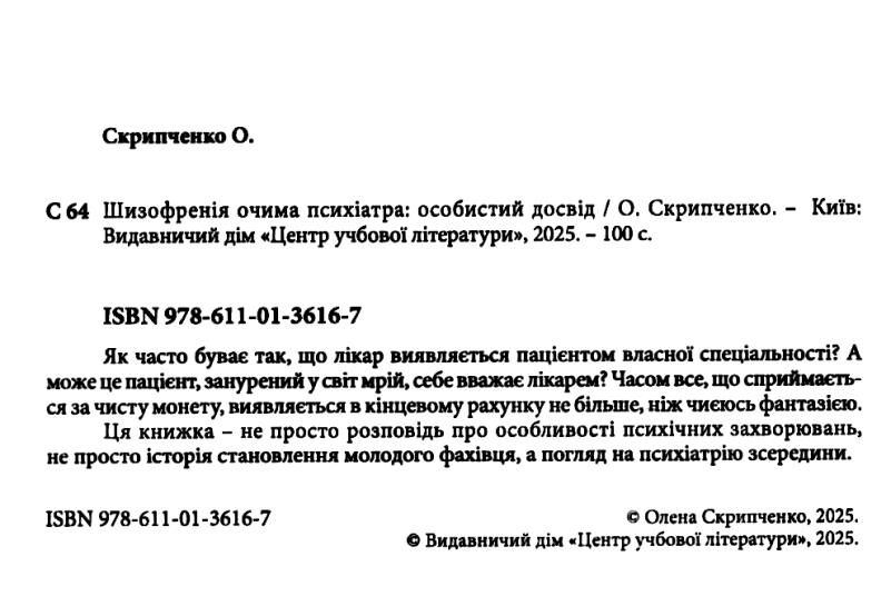 Як часто буває так, що лікар виявляється пацієнтом власної спеціальності? А може це пацієнт, занурений у світ мрій, себе вважає лікарем? Часом усе, що сприймається за чисту монету, виявляється в кінцевому рахунку не більше, ніж чиєюсь фантазією. Ця книжка — не просто розповідь про особливості психічних захворювань, не просто історія становлення молодого фахівця, а погляд на психіатрію зсередини.