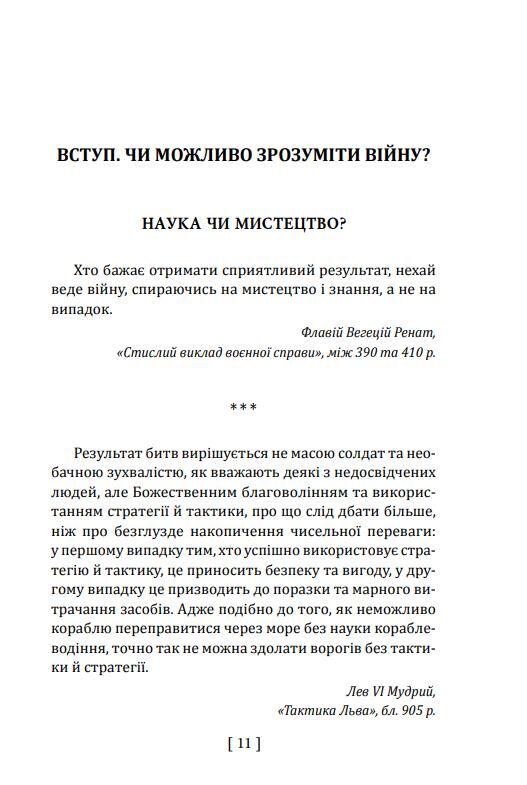 У цій збірці, яка виходить у час жорстокої війни рашистського режиму проти народу України, вміщені висловлювання видатних воєнних діячів про стратегію і тактику, маневри і логістику, командирів і воїнів, а також про ворогів. Ця книжка — своєрідна інструкція до дій, що дає можливість перемагати навіть сильнішого противника. Водночас афоризми можуть стати у пригоді й ширшому колу читачів — у ситуаціях, не пов’язаних з війною.