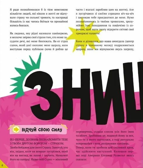 Яскрава і надихаюча, ця книжка-порадниця стане підтримкою для всіх дівчат, які перебувають на початку свого становлення, у період, коли вже не хочеться, щоб тебе вважали дитиною, у період перших протестів і заяв, перших закоханостей, пошуку своїх орієнтирів. Вона допоможе встановити свої межі, впоратись зі страхами та невпевненістю, наважитися бути собою і, можливо, навіть змінити світ. Вона навчить: вибирати себе у першу чергу: свої цілі, плани, цінності, відчувати свої емоції, піклуватись про своє фізичне та ментальне здоров’я, не боятись викликів і рухатись назустріч собі. Вона радить не мовчати, коли тебе ображають, цькують у школі і куди звернутись, коли це сталось. Розказує, як знайомитись і розпізнати справжніх друзів, як об’єднуватись у спільноти і разом втілювати корисні ініціативи. Вчить як складати свої плани та досягати мету і чому у цьому не обійтись без книжок. Зрештою, вона вчить як завжди віднаходити свою силу.