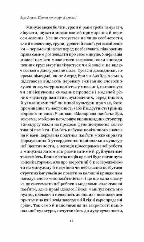 «Проти культурної амнезії» — нова книжка літературознавиці Віри Агеєвої, у якій вона досліджує роль пам’яті у формуванні національної ідентичності. Віра Агеєва говорить про український досвід як постійну боротьбу за право пам’ятати в умовах, коли колонізатори забороняли нам самим розповідати про своє минуле й нав’язували вигідну їм інтерпретацію. Спротив політиці забування не припинявся ніколи. Розповідаючи захопливі історії, інтерпретуючи класичні й сучасні тексти, авторка показує, що збереження колективної пам’яті — це передумова виживання нації. Літературознавиця також наголошує: важливо не лише зберігати пам’ять, а й актуалізувати ті її сегменти й епізоди, які сьогодні звучать найвиразніше, найбільше відповідають сучасним викликам і потребам.