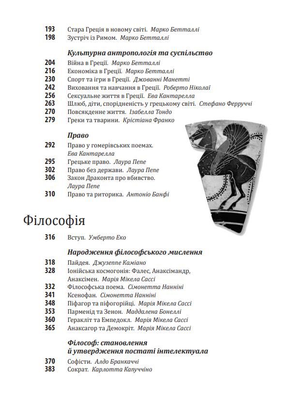 Проект «Історія європейської цивілізації» охоплює період від античних часів до ХХ століття і поділений на три основних блоки: Античність (3 томи — Близький Схід, Греція, Рим), Середньовіччя (4 томи — Раннє середньовіччя, Високе середньовіччя, Пізнє середньовіччя, XV століття) і Сучасність (5 томів — XVI— XХ століття). При створенні цього надзвичайного проекту його упорядник — видатний італійський вчений-філософ, літературний критик, письменник Умберто Еко (1932—2016) — керувався мультидисциплінарним принципом: Історія, Філософія, Міфологія та релігія, Образотворче мистецтво, Література, Наука і техніка, Музика. Статті до дисциплін написані провідними італійськими фахівцями у кожній галузі.«Історія європейської цивілізації. Греція» — це сучасна енциклопедія історії Європи, яка надає повну картину політичного, військового та культурного світу Стародавньої Греції від початку палацової фази мінойської цивілізації (близько 2000 року до н. е.) до завершення Ахейської війни, останньої спроби відкритого повстання проти Риму (146 рік до н. е.). Видання доповнено багатим ілюстративним матеріалом — всесвітньо відомими шедеврами