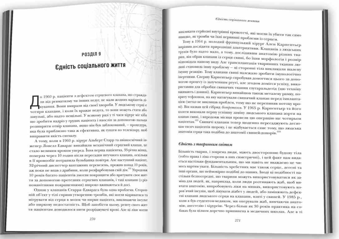 Занадто довго наукова спільнота була надмірно зосереджена на темній стороні нашої біологічної спадщини: здатності до насильства, жорстокості, упереджень та егоїзму. А у світі наростальної політичної та економічної поляризації дуже спокусливо ігнорувати позитивну роль еволюційного минулого. Але природний добір наділив нас набором корисних соціальних рис, включно зі здатністю до любові, дружби, співпраці та навчання. Усі досягнення еволюції (інструменти, розвинене сільське господарство, формування міст і націй) пов'язані із нашою вродженою схильністю до створення цивілізованих суспільств.