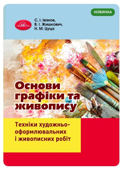 Основи графіки та живопису. Техніки художньооформлювальних і живописних робіт : навч. посібн. для здобувач. проф. (проф.-тех.) освіти / С. І. Іванов, В. І. Жишкович, Н. М. Цуца, М. М Дрімайло, О. М. Жеребецька. Київ : Грамота, 2026. 224 с. : іл. Посібник відповідає чинним програмам із дисциплін згідно з ДСПТО 5312.ОК.74.402014 для підготовки (підвищення кваліфікації) робітників із професії «Виконавець художньооформлювальних робіт», ДСПТО 5312.00.002014 — «Декоратор вітрин», ДСПТО 5312.ОК.74.402012 — «Оформлювач вітрин, приміщень і будівель». У виданні наведено відомості про основні закони композиції, основи графіки й живопису, методику роботи над живописним зображенням, техніки художньооформлювальних і живописних робіт. Для здобувачів професійної (професійнотехнічної) освіти та викладачів.