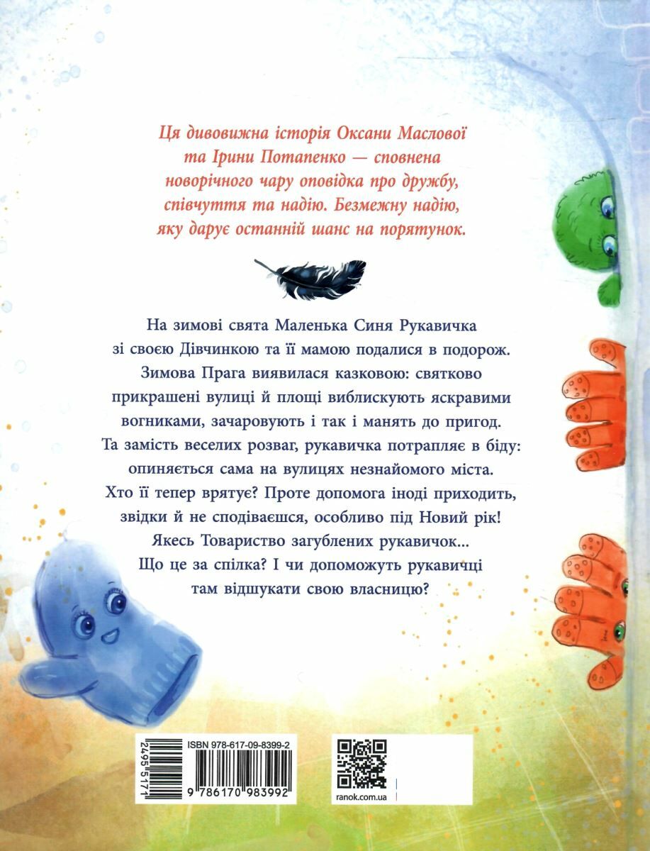 На новорічні свята Маленька Синя Рукавичка зі своєю Дівчинкою та її мамою подалися в подорож. Зимова Прага виявилася казковою: святково прикрашені вулиці й площі виблискують яскравими вогниками, зачаровують і так і манять до пригод. Та замість веселих розваг, рукавичка потрапляє в біду: опиняється сама на вулицях незнайомого міста. Хто її тепер врятує? Проте допомога іноді приходить, звідки й не сподіваєшся, особливо під Новий рік! Якесь Товариство загублених рукавичок?..