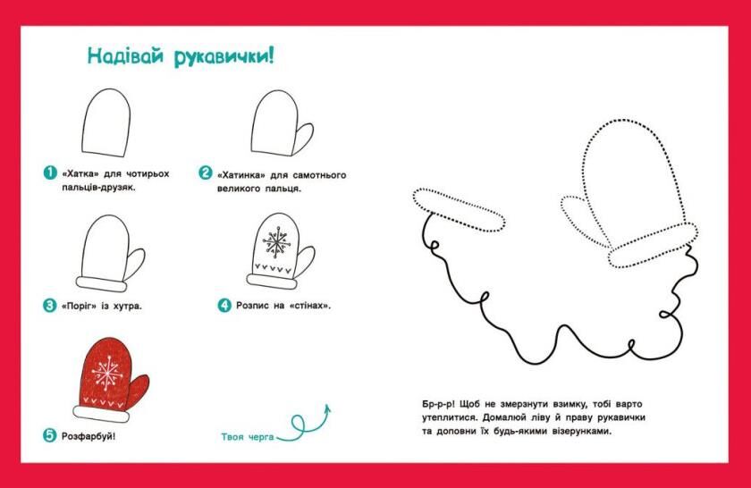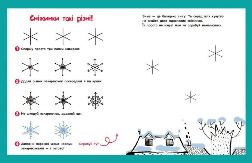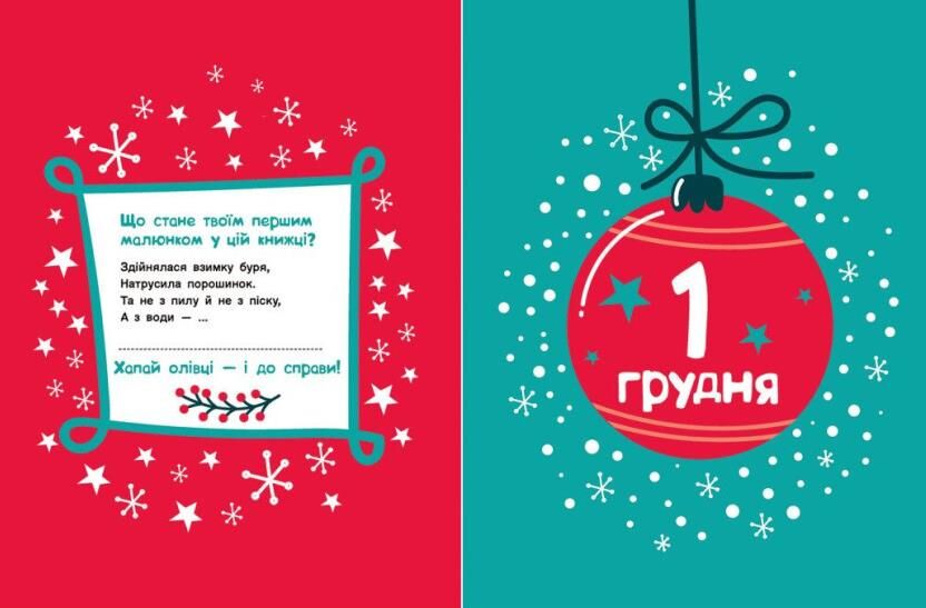 Адвент-малювалка включає 25 покрокових інструкцій з малювання різдвяних символів: ялинки, сніговика, подарунків, оленів та інших зимових атрибутів. Кожний день з 1 по 25 грудня — нове завдання, яке допомагає дитині не просто розважитись, але і розвинути художні навички.