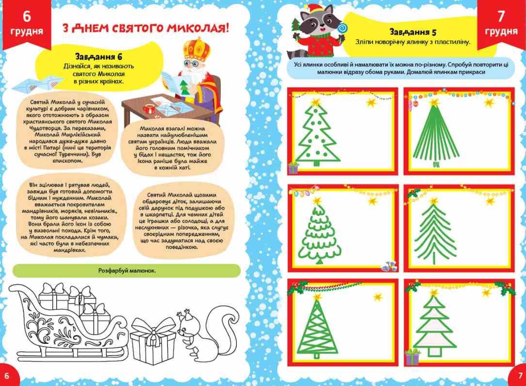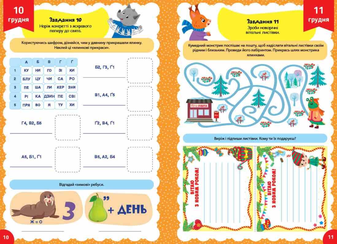 "Як весело та з користю провести час в очікуванні Нового року? Звісно, із яскравою, креативною та пізнавальною серією «Адвент-розвивалка»! У ній малюк знайде безліч цікавих завдань для розвитку мислення та кмітливості: лабіринти, шифровки, ребуси, домальовки й розмальовки, плутанки й загадки. Також у кожній книжці є захопливі поробки та інструкції до їх виготовлення, лист святому Миколаю та вітальні листівки. Упродовж усього грудня малюк виконуватиме різні завдання та за допомогою наліпок вестиме відлік днів до Нового року в яскравому плакаті-календарі, який потрібно вийняти з книжки та прикрасити ним стіну. Серія «Адвент-розвивалка» допоможе дитині розвинути корисні навички, підготуватися до головного зимового свята та подарує відмінний настрій!