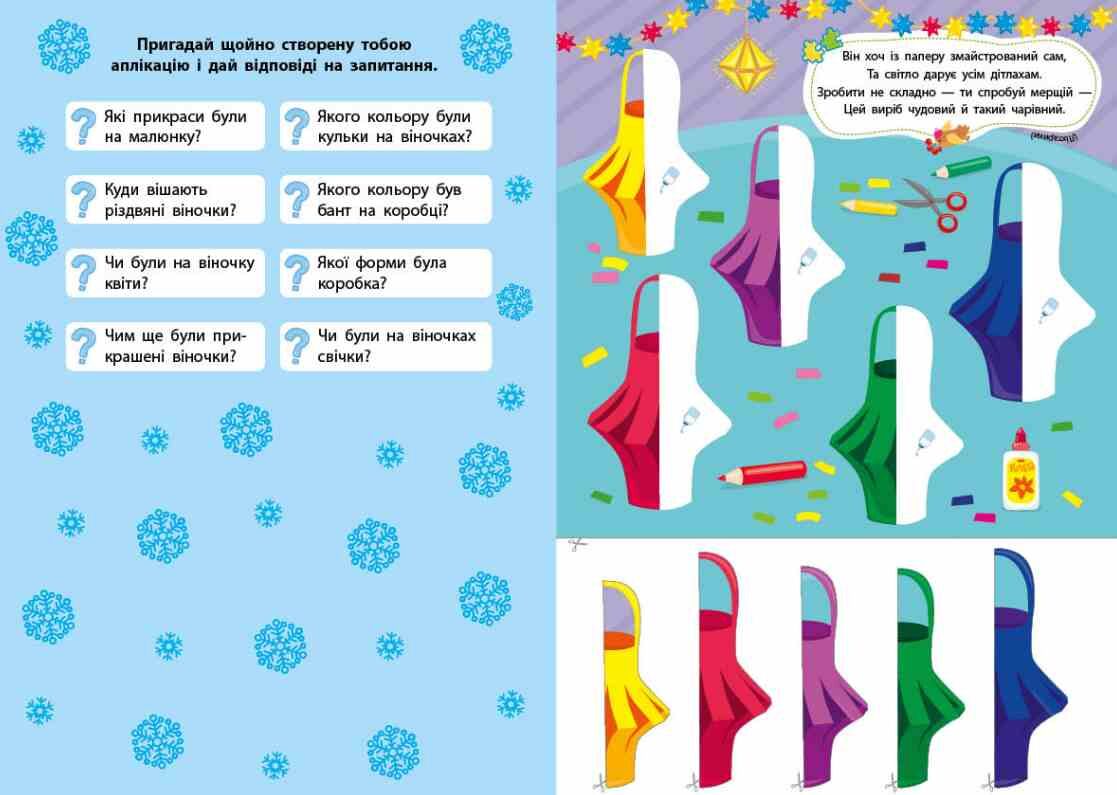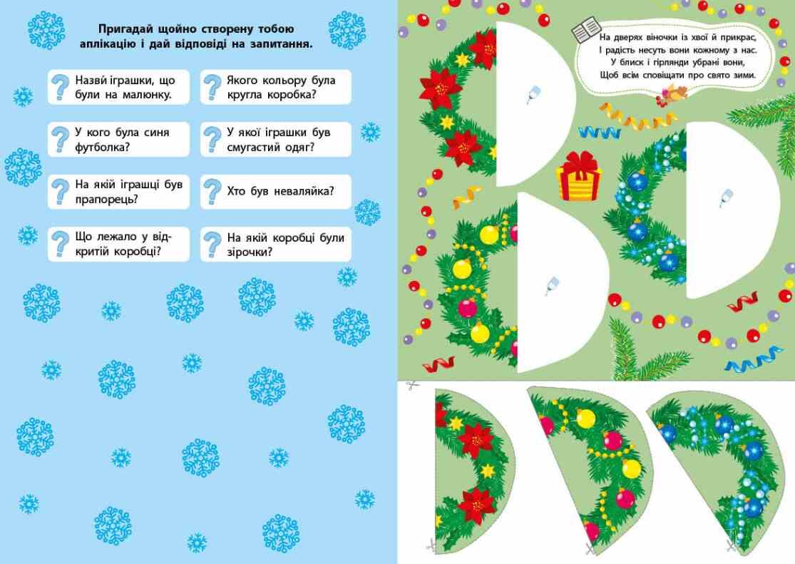 Серія «Зимові аплікації» створена для розвитку творчих здібностей і дрібної моторики маленьких непосидючок. У кожній книжці на малюків чекають святкові зимові ілюстрації, зображення на яких потрібно доклеїти, а ще — віршики й загадки, цікаві питання і наліпки. Книжки серії розвинуть логічне мислення, потренують пам’ять та увагу, виховають посидючість, організують цікаве дозвілля і сформують бажання створювати подарунки рідним і близьким своїми руками.