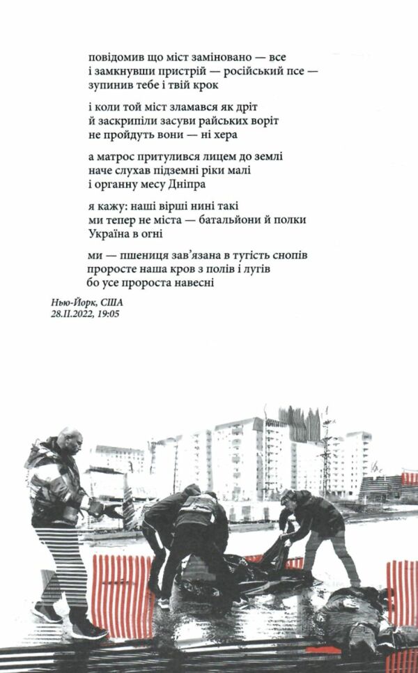 Двомовна, українсько-французька, поетична антологія, що представляє досвід перших днів відкритого ворожого вторгнення. Тут промовляють учні шкіл і професори університетів, воїни і цивільні волонтери, досвідчені поети й аматори. Ілюстрації, що супроводжують тексти, і персоналізована презентація кожного автора дозволяють розмістити ці вірші свободи в часі та місці їх створення, але понад усе вони змушують нас почути, як б’ється серце українського опору.