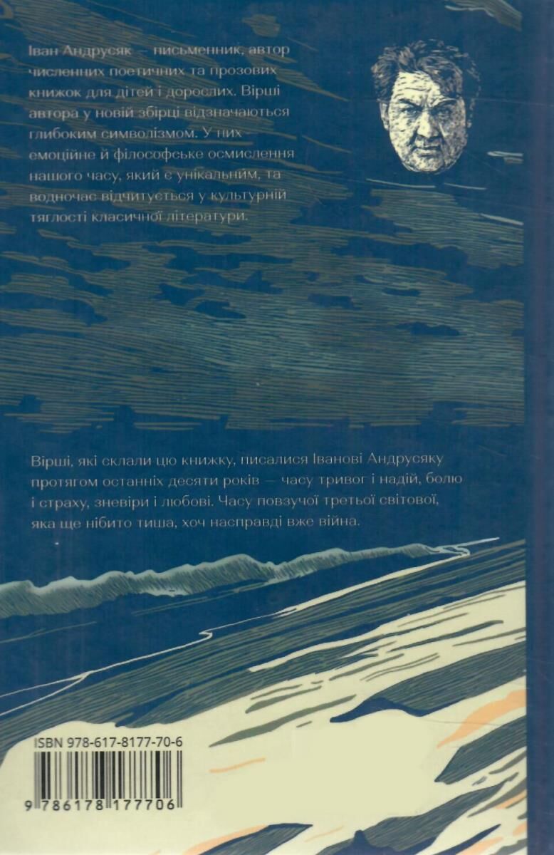 Вірші, які склали цю книжку, писалися Іванові Андрусяку протягом останніх десяти років — часу тривог і надій, болю і страху, зневіри і любові. Часу повзучої третьої світової, яка ще нібито тиша, хоч насправді вже війна.