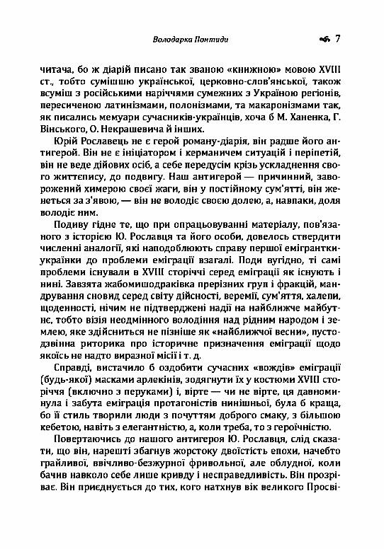«Володарка Понтиди» – це унікальна в українській літературі пригодницька мандрівка лабіринтами королівських дворів, ложами таємних товариств, феєречними маскарадами, капканами підозрілих дешевих корчомок та в’язничних келій у передреволюційній Європі 1770-х років.Герой цього авантюрного і глибоко філософського роману – український козак-шляхтич Юрій Рославець. Зачарований «дамою свого серця» і претенденткою на імператорський трон, він «женеться за з’явою» своєї пристрасті від Парижа, через Німеччину до Венеції, Неаполя, Риму й Пізи, переживаючи карколомні пригоди і сповнюючись життєвою мудрістю й дещо фаталістичним розумінням життя і світу. Цей літературний шедевр написаний 1987 року в Нью-Йорку контроверсійним українським автором, племінником Лесі Українки, Юрієм Косачем (1908–1990) – видатним, хоча й досі, на жаль, маловідомим майстром української історичної прози.