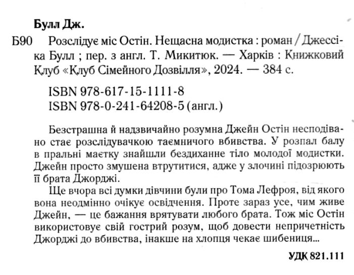 Безстрашна й надзвичайно розумна Джейн Остін несподівано стає розслідувачкою таємничого вбивства. У розпал балу в пральні маєтку знайшли бездиханне тіло молодої модистки. Джейн просто змушена втрутитися, адже у злочині підозрюють її брата Джорджі.