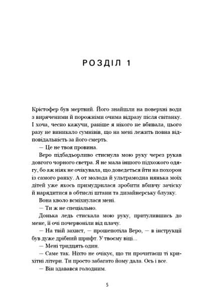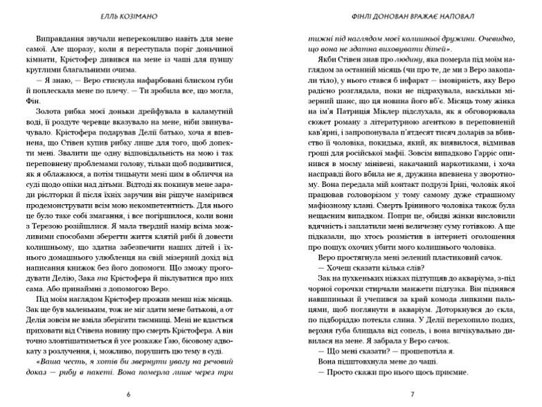 Фінлі знову намагається дописати свій новий роман і бодай якось триматися на плаву з двома малими дітьми. З хорошого — поруч є Веро, няня й вірна соратниця, а єдиний мертвий «клієнт», з яким Фінлі мала справу останнім часом, — це золота рибка її доньки.