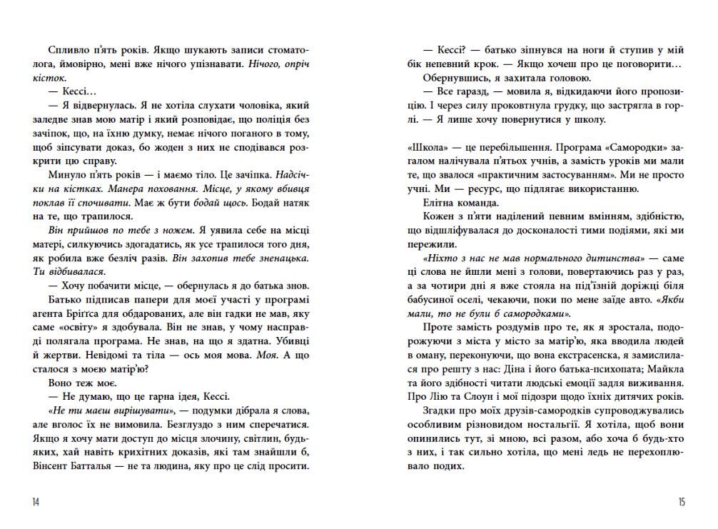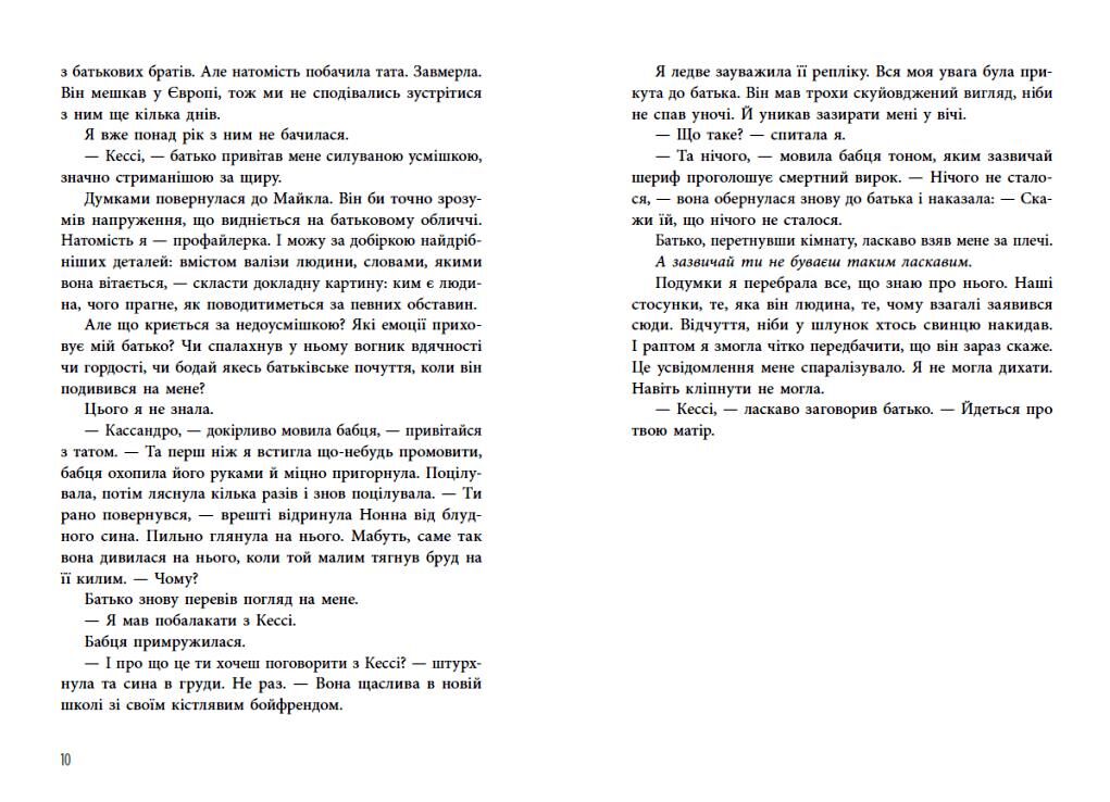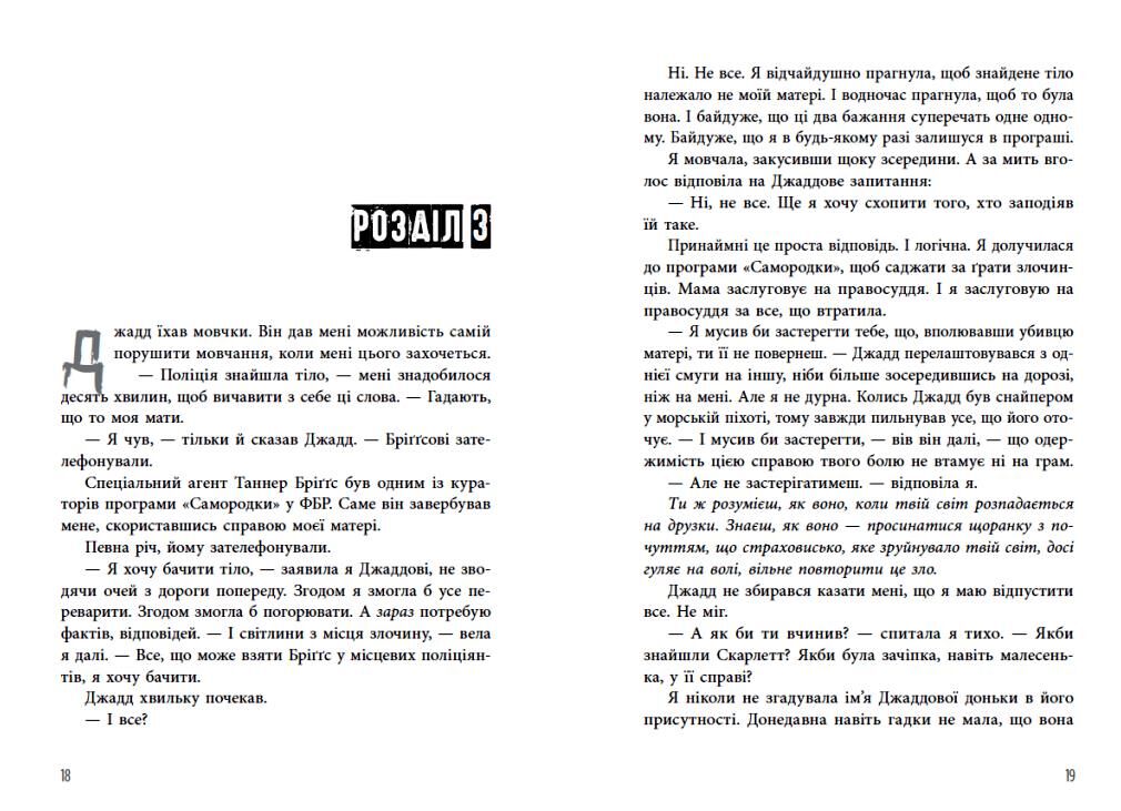 Замолода для гулянок, але не замолода для участі у федеральних розслідуваннях серійних убивств, — Лія драматично зітхнула. — Це історія всього мого життя. — На щастя для нас, — весело відповів Майкл, — у мене ніколи не виникало такої невдалої думки, яку я враз би не прийняв як найдорожчого друга… так уже сталося, що робити те, про що потім жалкуєш, — моя спеціалізація. — Я не люблю втікати, — Майкл… глянув на мене. — Я не тікаю, не ховаюся, не тремчу від страху, не благаю, Кессі. Бо втечі, переховування й благання ніколи не діють. І нічим не зарадять. Ставки шалено ростуть! Серія жорстоких убивств сколихнула Лас-Вегас: жертви загинули публічно, проте вбивця уникнув камер спостереження. На зап’ясті кожного з тіл виявили низку чисел — витатуйовану, випалену, написану чорнилом, маркером… І способи убивства різні. Жахливі. Утоплена жертва. Спалена. Прошита стрілою. Задушена… І що ближче самородки до розгадки, то небезпечнішою стає справа. Цього разу в центрі уваги неперевершена Слоун! Ніщо не скривдить тебе, якщо ти сам не дозволиш.