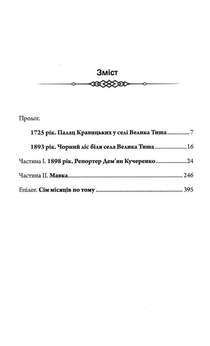 1898 рік. Ліс біля села Велика Тиша тутешні мешканці називають Чорним. Кажуть, у ньому живе нечисть. А ще там знаходять понівечені тіла молодих жінок, які в день своєї загибелі геть не мали причин іти до лісу, і хтозна, яка мара їх туди заманила.