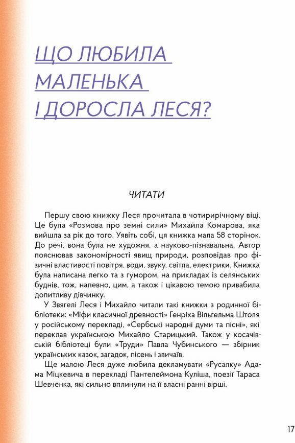 Ми щодня зустрічаємо Лесю Українку в пам'ятниках і назвах вулиць, на купюрах і в шкільних кабінетах. Але яким щодня бачила світ сама Леся? Жива людина, а не офіційний портрет. Що вона любила, з чого сміялася й сумувала, про що писала листи рідним, з ким дружила? Кумедні прізвиська для братів-сестер, хоумскулінг, стильні вбрання, нехіть до публічних виступів і далекі мандри — певно, кожен знайде щось спільне з Лесею, яка називала себе boule vagabonde — «мандрівний клубочок».