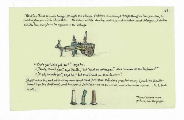 Пан Щасливець уперше сам за кермом вирушає на новому автомобілі до друзів Бевзників. І, звісно, від пригод не втекти. Там тачка капусти посеред дороги, там візок з бананами, а в лісі — ще й троє ведмедів. Але не всі пригоди скінчилися разом з мандрівкою. Що ж чекає на пана Щасливця дома і що то за натовп суне до нього? Про все це розповідає ілюстрована казочка Дж. Р. Р. Толкіна, яка зродилася з пригод самого автора на його першому автомобілі, придбаному 1932 року. Прототипами ведмедів стали іграшкові ведмедики Толкінових синів. А двом персонажам він дав імена двох героїв свого «Володаря Перснів». Та й ілюстрації до цієї книжечки виконав сам пан Толкін, прив’язуючи розповідь до малюнків, а часто мовби безпосередньо їх коментуючи.