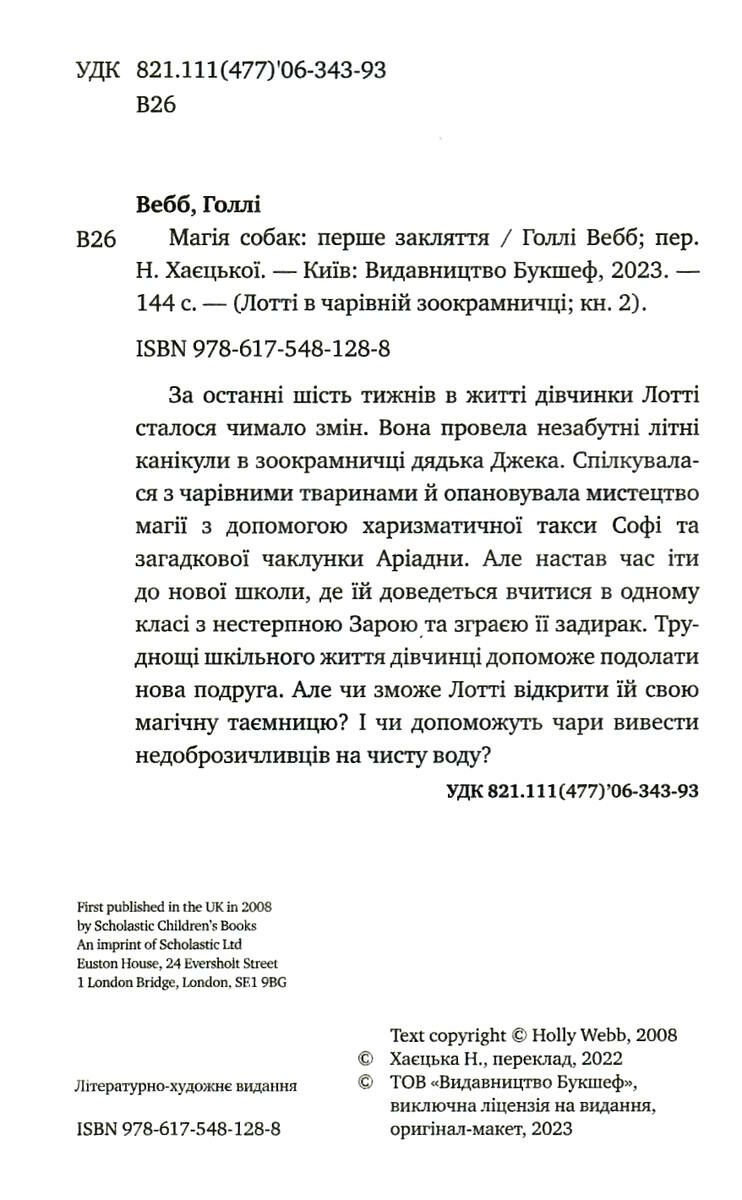 За останні шість тижнів в житті дівчинки Лотті сталося чимало змін. Вона провела незабутні літні канікули в зоокрамничці дядька Джека. Спілкувалася з чарівними тваринами й опановувала мистецтво магії з допомогою харизматичної такси Софі та загадкової чаклунки Аріадни. Але настав час іти до нової школи, де їй доведеться вчитися в одному класі з нестерпною Зарою та зграєю її задирак. Труднощі шкільного життя дівчинці допоможе подолати нова подруга. Але чи зможе Лотті відкрити їй свою магічну таємницю? І чи допоможуть чари вивести недоброзичливців на чисту воду?