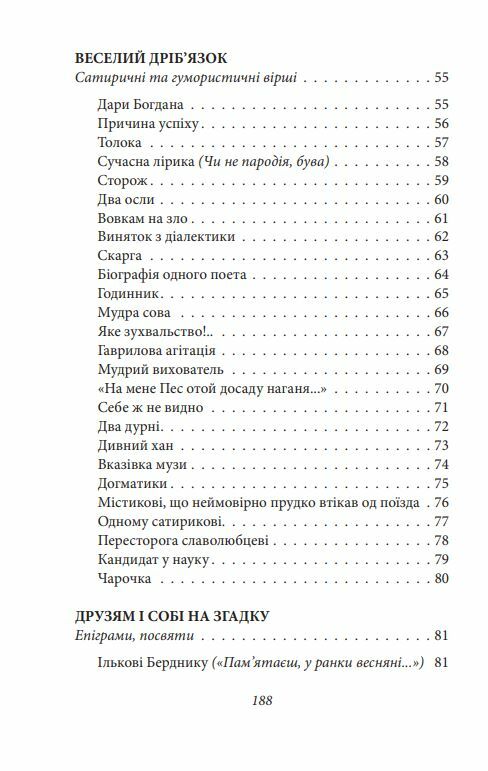 До збірки ввійшли його казки, байки, поеми, балади, епіграми, посвяти друзям, а також новели. Ім'я письменника передусім асоціюється з віршованими творами. Однак не меншої уваги варта й мала проза митця. В. Симоненко майстерно будує сюжет новел, занурюється в психологію персонажів, залучає до співтворчості читача. Це, безперечно, модерністська проза, написана у світлі новітніх літературознавчих підходів.