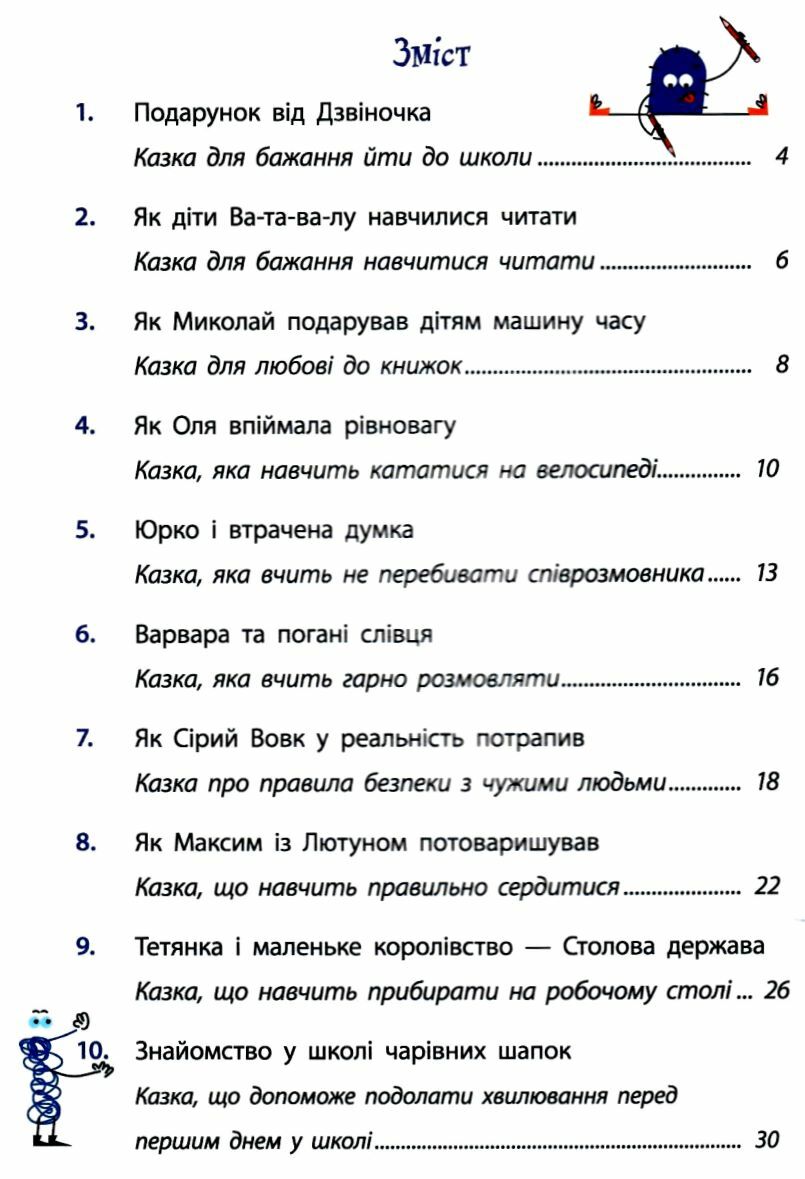 Початок шкільного життя — як переїзд в нову країну. Незнайоме все: будівля, люди, спосіб спілкування, правила поведінки. З’являються обов’язки і новий режим. Цієї новизни часто батьки бояться більше, ніж діти. «Як же він буде?!», «Як же вона зможе?!», «Як ми всі впораємось?!» Гумористичні і дбайливі казки психолога і казкотерапевта Анастасії Диво-Юдіної допоможуть вам швидко і спокійно адаптуватися. Їх можна читати по порядку, а можна — за потребою, яка тема зараз важливіша. Після читання й слухання обговоріть історію, скориставшись поданими запитаннями. Це більше освітить проблему і додасть впевненості для її вирішення. І дорога до школи стане легкою і цікавою!