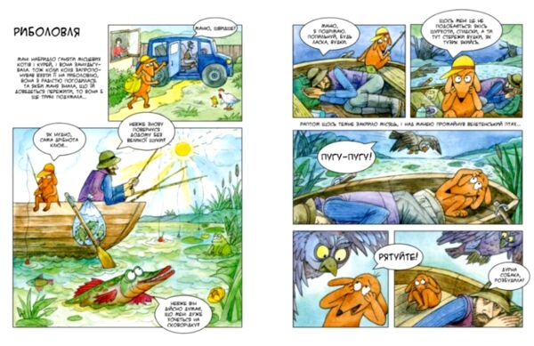 Я маю гострий розум, тож, вважаю, вам буде кумедно побачити світ людей моїми очима. І ще ви обов'язково маєте познайомитися з гостями й мешканцями Опішні, адже кожен із них чимсь цікавий! Моя господиня Ната — дуже творча людина, щоліта вона разом з дочкою Оксаною тікає від міської метушні до тихого українського села. Оксана любить спостерігати за метеликами й дружить із козою Раєю. Аня створює кераміку й щоранку плаває в річці. Коля — запеклий рибалка, саме з ним ми ловили Найбільшу Рибу. Надя — найгостинніша серед сусідок, завжди пригощає всіх чимось смачненьким. Кіт Сірий завжди приходить на запах риби, очеретяний кіт Малюк — величезний і добрий, Анина собака Шеллі дуже благородна, а сусідські собачки Венера й Шанель — хитрі й пустотливі.