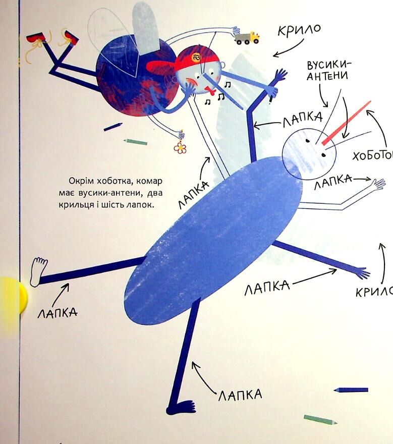 Комарик Дзюбрик, з одного боку, радіє, що буде гратися з іншими дітьми-комариками
