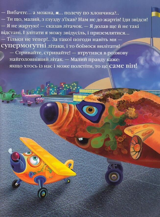 Зворушлива історія про літачка, з якого часто глузують великі літаки. Але одного дня, далеко в горах, саме він рятує маленького хлопчика. Книжка про те, що ніколи не можна втрачати надії...