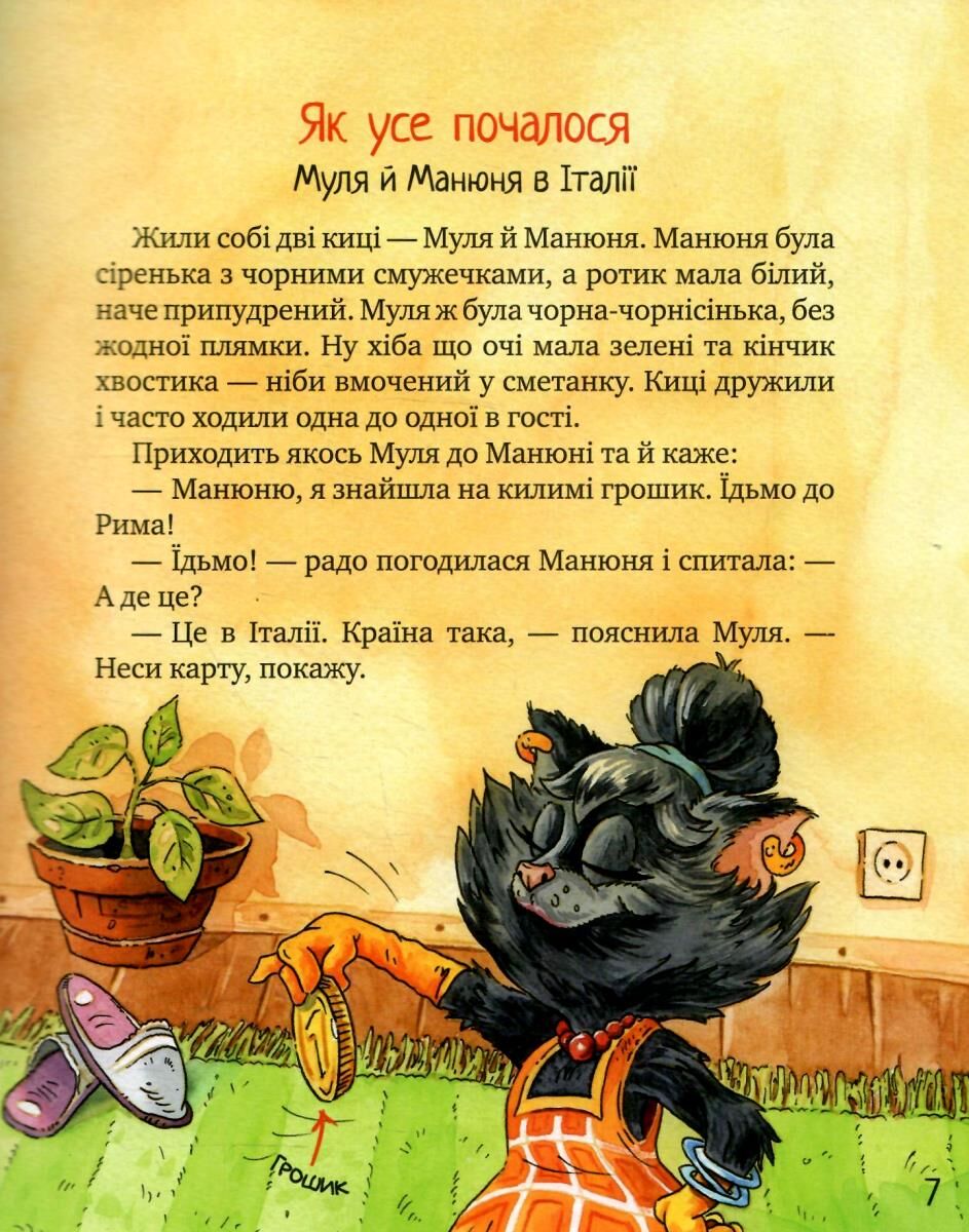 Чи бувають дитячі книжки розумними, пізнавальними й водночас легкими та веселими? Перед тобою саме така книжка про подорожі в різні куточки світу. «Киці-мандрівниці» — це короткі історії з динамічним сюжетом, неперевершеною грою слів і тонким гумором. Ерудована й серйозна Муля та весела й трохи наївна Манюня завжди готові до нових пригод, вражень і, звичайно, знайомств. З кицями маленькі читачі завиграшки дізнаються багато нового й цікавого про все на світі. Тепер всі історії під однією палітуркою!