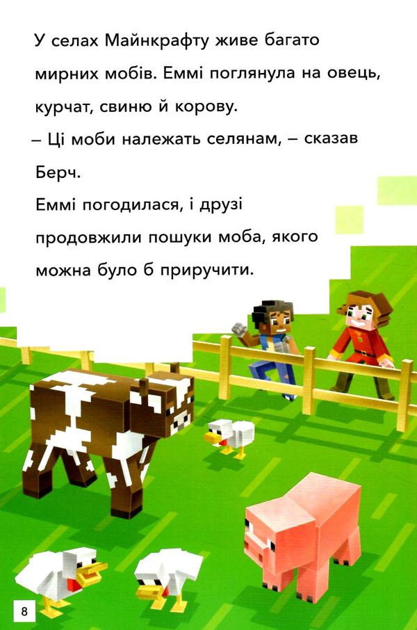 Серія «Для маленьких читачів» — це книжки з невеликими оповіданнями для дітей із різними навичками читання. Тексти 2-го рівня розраховані на дітей, що вже вміють читати самостійно та прагнуть стати у цьому впевненішими та вправнішими. Шукаючи пригод у Верхньому світі Minecraft, Еммі, Берч та Кусь зустрічають на своєму шляху різних мобів. А вони бувають не тільки дружніми, а й ворожими! Створені, аби допомагати читачам-початківцям тренуватися і поліпшувати свої вміння!