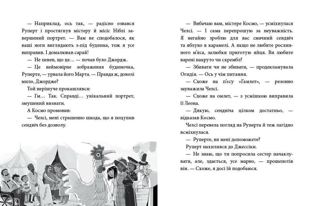 Зустрічайте третю книжку в серії «Агенція дивних сестер»! Нова історія «Курник, трохи місива й сендвіч» розповідає про трьох сестер-детективок. У містечку Ковенлі триває осінній ярмарок. Ковтунільда, Недолада й Огидія катають дітлахів на чарівних мітлах, а дев’ятирічна Джессіка Ніблі доглядає за тваринами у контактному зоопарку. Та раптом зникає головна зіркова птиця! Четвірка друзів вирушає на пошуки. На них чекає шалена пригода із зачарованими гірками, жабою в циліндрі та липким слідом, що веде просто в глибину таємниці. А ще героям доведеться знайти спосіб виправити наслідки невдалих чарів і навчитися вибачатися.