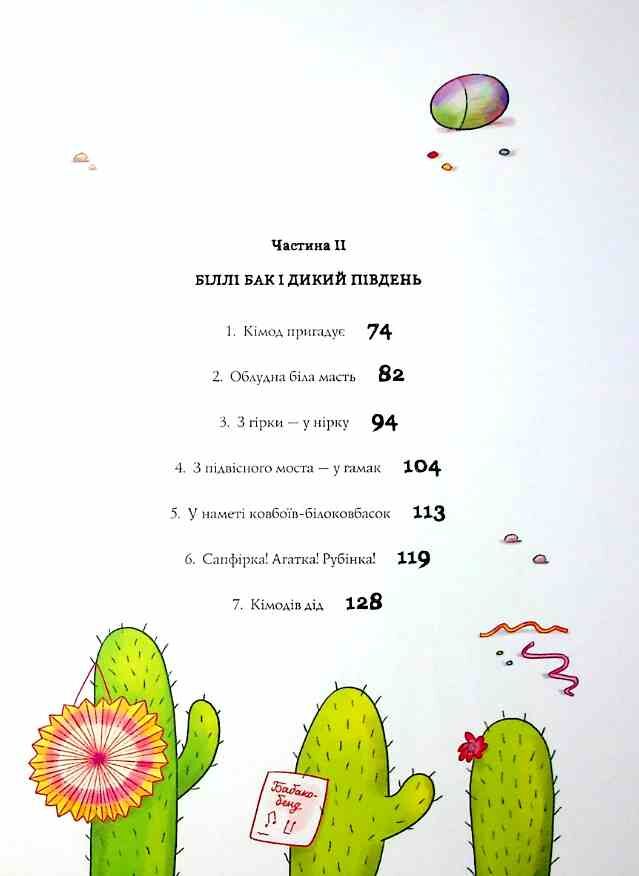 Щойно минула чергова зимова сплячка, а бабак Біллі Бак знову вже по самі вуха у пригодах. У краї Валі-Вак по-іншому ніяк! Ці пригоди увірвалися в Барвистий ліс разом зі стадами марудних бізонів і гупорогів, а тоді закрутили-завертіли Біллі та його друзів так, що ті ледве не потрапили в меню до ведмедя-ненажери, навчилися розмовляти зіпсутим телефоном, дісталися на Дикий Південь, де живуть ковбої-білоковбаски, дали по зубах грізній Білій Акулі й нарешті… наблизилися до розгадки таємниці Кімода.