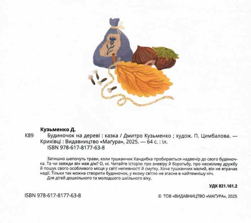 Затишно шепочуть трави, коли тушканчик Кандибка пробирається надвечір до свого будиночка. Та чи завжди він мав дім? О, ні. Читайте історію про зневіру й боротьбу, про несміливу дружбу й пошук свого особливого місця у світі непевності й смутку. Хоча тушканчик малий, він не втрачає надії. Тільки так можна створити будиночок, у якому світло не згасне в найтемнішу ніч.