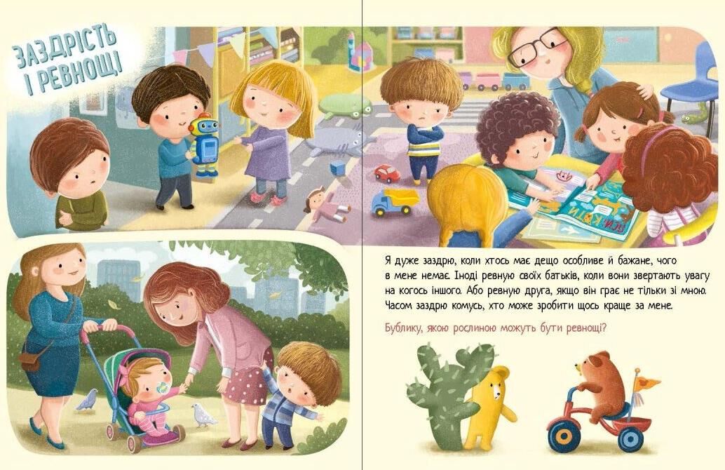 Радість, гнів, гордість, сум... Щодня маленький Дмитрик проживає десятки емоцій і ділиться ними зі своїм вірним другом — іграшковим ведмедиком БуБликом. Бублик знає, що сум схожий на дощовий день, а радість — на солодкий смак улюблених ласощів, і пояснює складні емоції просто та зрозуміло. А спеціальні поради для батьків стануть місточком до довірливого спілкування з дитиною. Корисна книжка, що навчить малюка слухати своє серце й добре розуміти себе та інших!