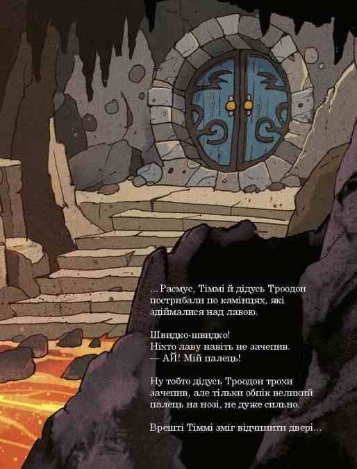 Агов, підлога – це лава, вище ноги від землі! Расмус та Тіммі весело гралися в печері Рексів, аж раптом почули страхітливий рев. Та це ж вивергається вулкан у горі Тролів! У горі, біля якої мешкає дідусь Троодон. Що робити друзям? Звісно, рятувати старенького від небезпеки.