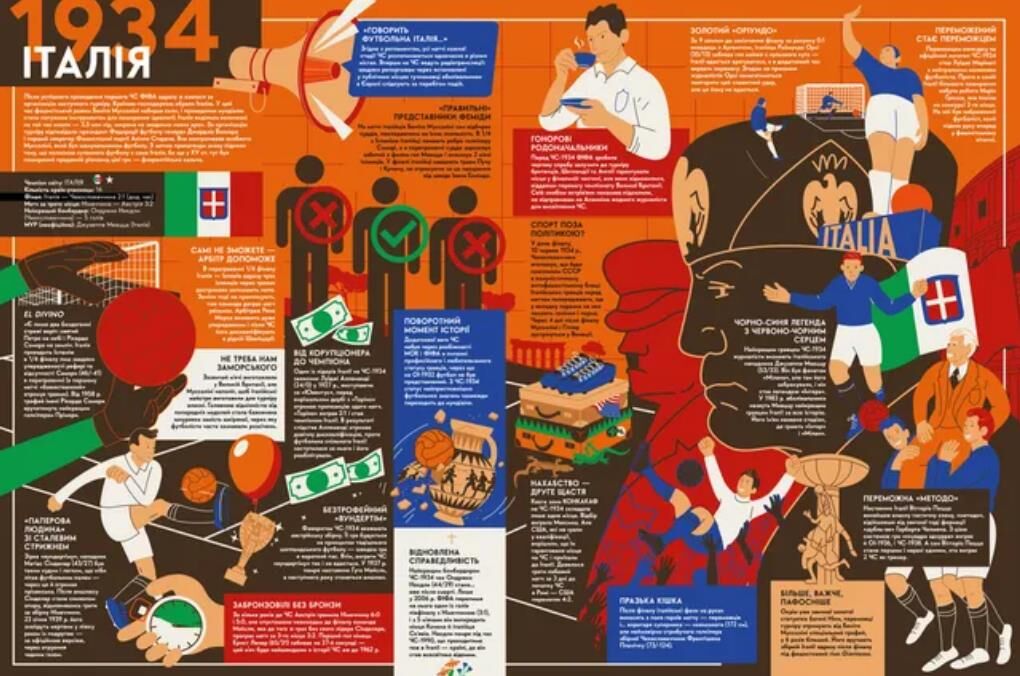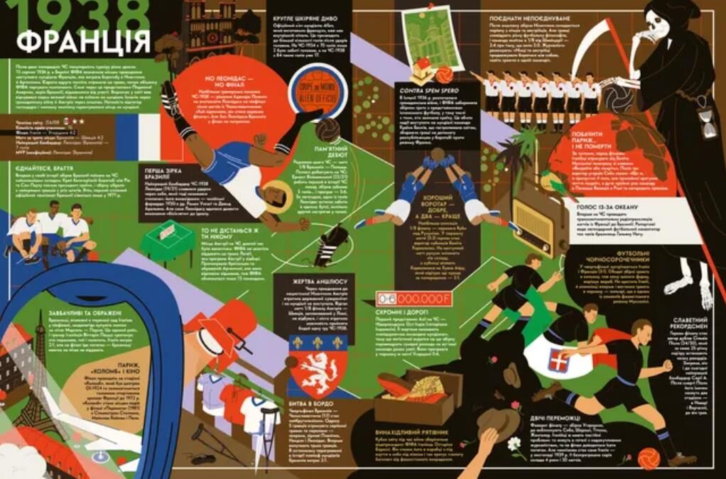 Футбол дивляться мільярди, в нього грають мільйони, за шанс виступити на мундіалі змагаються тисячі, сотням вдається пробитися на форум найсильніших і лише одиниці піднімають над головою Кубок світу. Кожен мундіаль є віддзеркаленням епохи і технічного прогресу людства. Від шкіряних моделей м’ячів — до поліуретанових, із вмонтованими чіпами, що фіксують кожен дотик. Від кораблів, якими на перший ЧС учасники плили більше 20 днів, до літаків, які доставляють команди на турнір за лічені години. Майже столітня історія ЧС приховує чимало таємниць. Чи справді Беніто Муссоліні погрожував смертю своїй збірній у випадку програшу на чемпіонаті? Яку характеристику дав командний психолог Бразилії легендарним Пеле і Ґаррінчі? Чому Марадону не взяли на ЧС-1978? Що насправді сказав Матерацці, спровокувавши Зідана на вилучення у фіналі ЧС-2006? Чому Мессі, найкращий гравець ЧС-2014, рік не міг спати? Понад 420 найцікавіших історій з 22-х мундіалів у яскравих ілюстраціях.