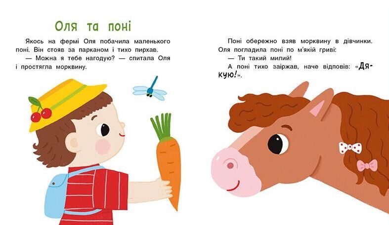 На сторінках книги — добрі та зрозумілі історії про щоденні ситуації: ігри, дружбу, маленькі відкриття та перші емоції. Повтори, прості слова й діалоги допомагають розвивати мовлення, уяву та емоційний інтелект.