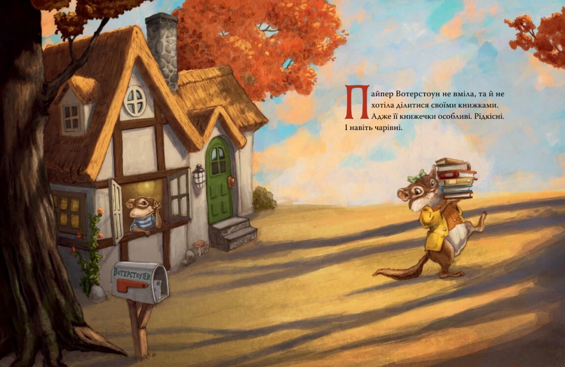 Пайпер Вотерстоун дуже любить свої книжки. Так сильно, що не вміє — та й не хоче — ділитися ними. Тому вона бере їх із собою всюди. У ліс… До міста… І навіть на дуже стрімкий пагорб! А коли стається біда, добрий бібліотекар показує Пайпер чарівний читацький квиток. Він подарує їй доступ до всіх-всіх книжок, про які вона тільки мріяла… Звісно, якщо Пайпер поділиться ними зі своїми сусідами, які теж люблять читати. Ця мила й майстерно проілюстрована історія від Гейлі Рокко, яка обожнює книжки, та Джона Рокко, відзначеного нагородами художника — справжній любовний лист до читання, бібліотек і бібліотекарів у всьому світі.