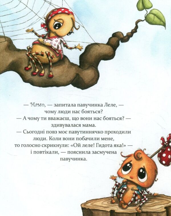 Маленька допитлива павучинка, яку вигадали Діана Амфт і Мартіна Матос, повертається, і не сама, а з друзями, родичами і новими враженнями! Тепер аж чотири казки під однією обкладинкою! Ви дізнаєтеся, чому люди бояться павуків, побуваєте на павучиному дні народження та почуєте цікаві історії про звірів далекої Африки, відвідаєте ферму та познайомитеся з тамтешніми тваринами, а також разом із героями та іншими мешканцями лісу відчуєте радість від того, що в родині з’являється ще одна дитина.
