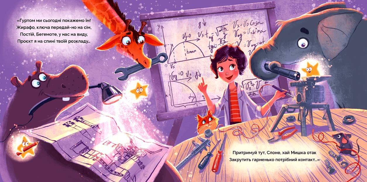 Науковиця Оля щоночі розглядає в телескоп зірки та будує пускову установку, щоб досліджувати космос. Та одного дня неподалік від її будинку стається лихо — від ракетного обстрілу потерпає зоопарк. Четверо нажаханих тварин приходять до Олі та просять її допомогти. Чи наважиться дослідниця відкласти свою мрію про космос та побудувати нову пускову установку для захисту новий друзів?