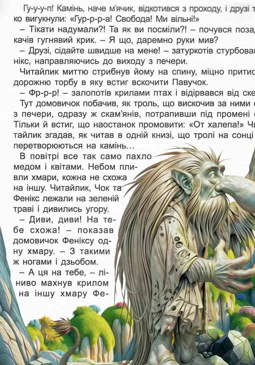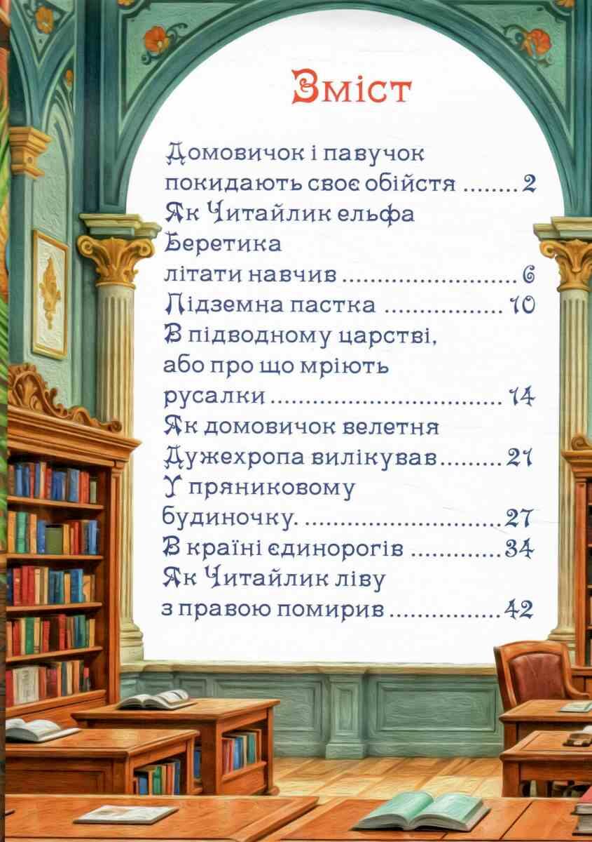 «Пригоди домовичка Читайлика» – чарівна історія про любов до книг, дружбу та добро. Домовичок Читайлик і його друг павучок Чок покидають дім, де панують лінь і байдужість, і вирушають на пошуки нового місця, де панує любов до знань. Під час мандрів вони зустрічають різноманітних фантастичних істот — русалок, лепрекона, фей, троля, велетня, птаха Фенікса, відьму, джина, короля єдинорогів, чарівника, вовкулаку та інших. Завдяки знанням із прочитаних книжок Читайлик допомагає кожному, хто потребує допомоги, і доводить, що добро, розум і щирість здатні змінити світ. Наприкінці подорожі друзі знаходять омріяний дім — дитячу бібліотеку, і стають справді щасливими.