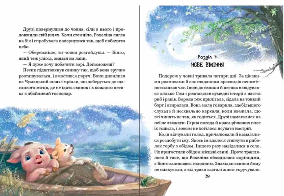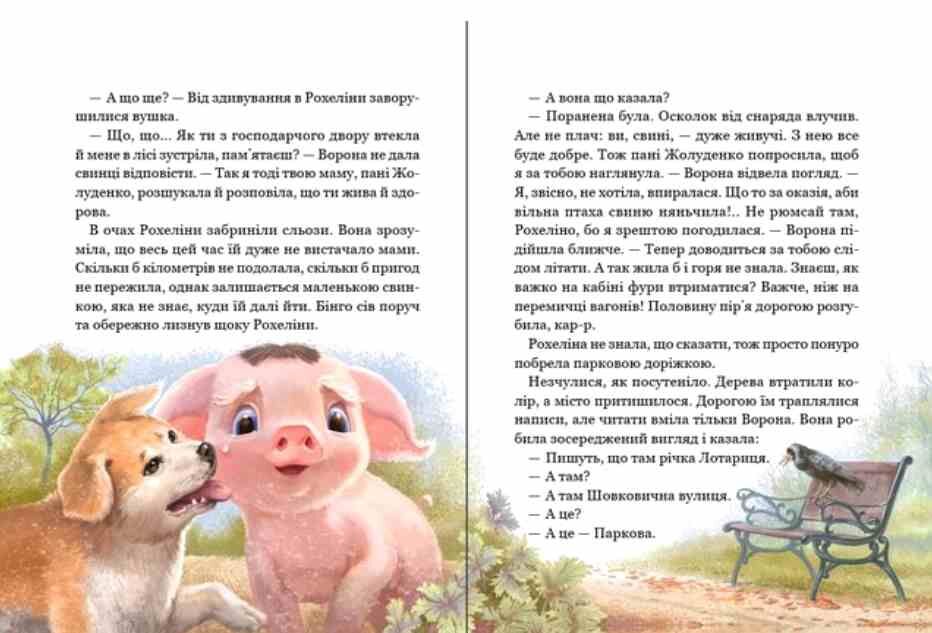 Казкова повість «Рохеліна Жолуденко та Бінго» — це історія свинки, яка через війну мусила покинути рідну ферму. На її шляху буде безліч цікавих і небезпечних пригод, а головне — зустріч зі справжнім другом, песиком на прізвисько Бінго. Рохеліні доведеться боротися за своє майбутнє, вчитися жити на новому місці й віднайти своє призначення. Це добра й весела історія, що подарує дітлахам години захопливого читання і нікого не залишить байдужим. Для молодшого і середнього шкільного віку.