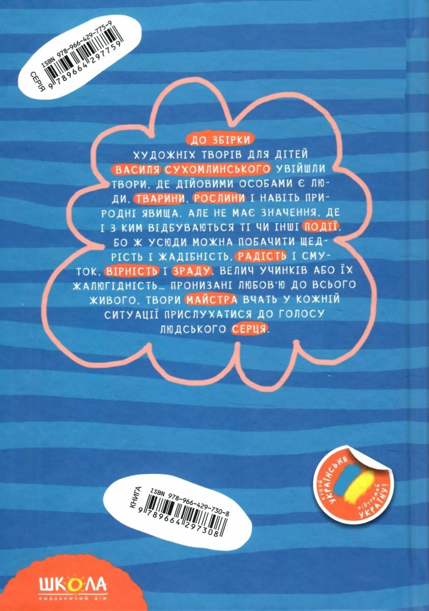 До збірки художніх творів для дітей нашого славетного земляка, Василя Сухомлинського, увійшли не тільки твори, де дійовими особами є люди (розділ «Дідусева таємниця»). На її сторінках ви також зустрінетеся з олюдненими тваринами, рослинами і навіть природними явищами (розділ «Бджолина музика»). Пронизані любов’ю до всього живого твори Майстра вчать у кожній ситуації прислухатися не до своїх примх і амбіцій, а до голосу людського серця. Книга призначена для читання дорослими дітям дошкільного або молодшого шкільного віку.