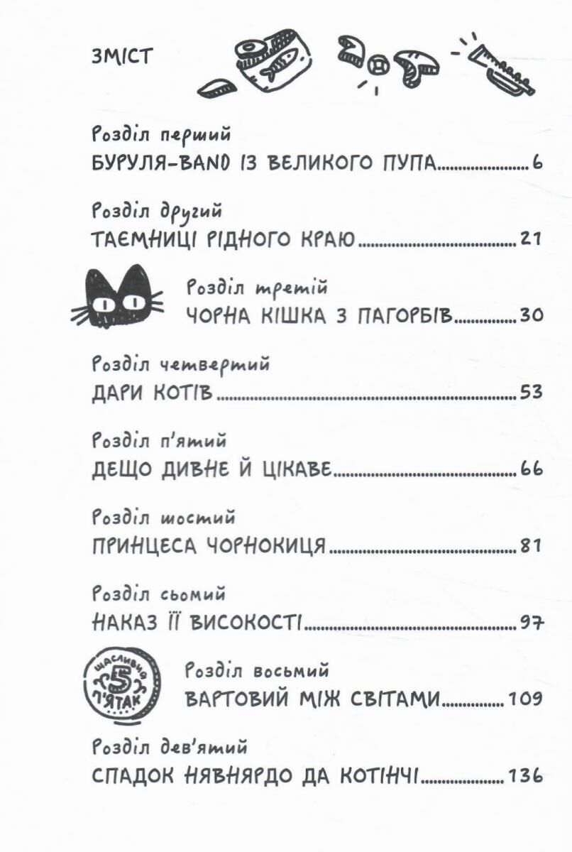 Родина Буруль змушена залишити любий серцю Харків і переїхати до затишного буковинського містечка Великий Пуп. Тут, серед величних гір і оповитих легендами місць, близнюки Ярина і Ярік натрапляють на загадкову чорну кішку. Ця випадкова зустріч перевертає життя дітей догори дриґом і спонукає їх поринути в карколомні пригоди. Полагодження чарівного ліфта, подорожі між світами людей і котів, викриття зловісних плани контрабандистів, а тут ще й проєкт у школі треба зробити вчасно… Чи впораються малі Бурулі з такою навалою справ? Читайте й дізнавайтеся!