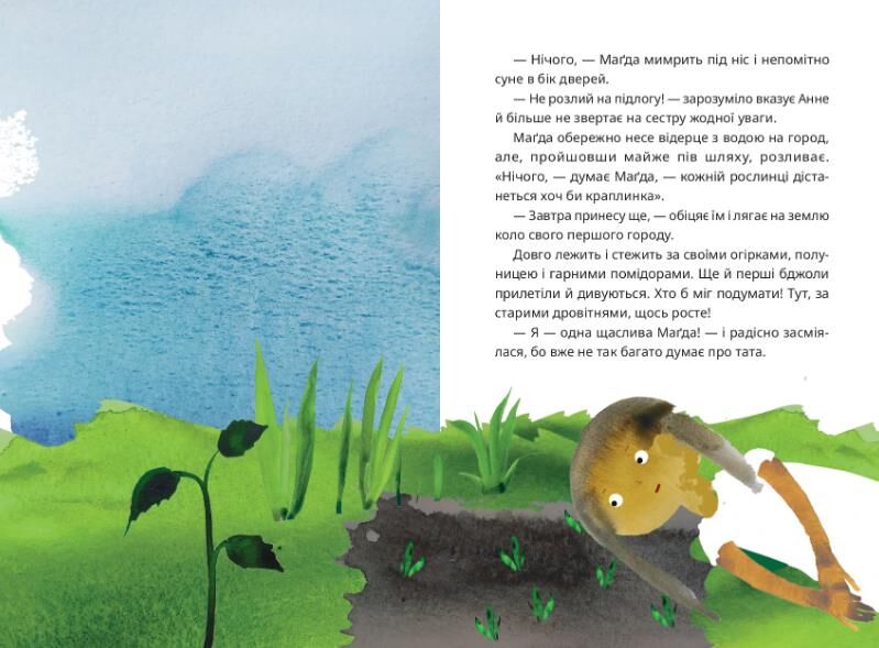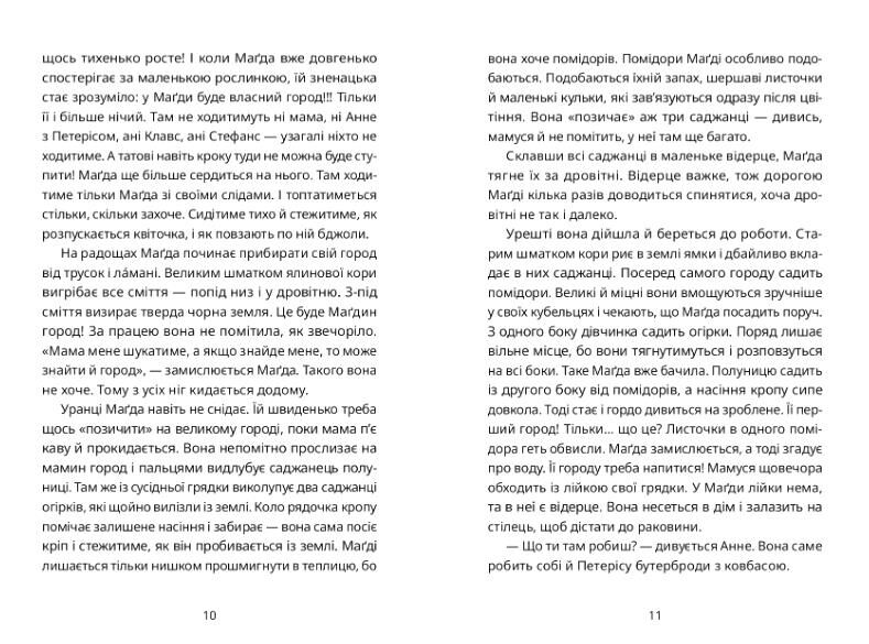 Маґда — маленька дівчинка із двома сірими кісками. Навесні їй виповнилося вісім років і вчора був її останній шкільний день у першому класі. Маґда в передчутті канікул, які вона проведе з братами й сестрами, а головне із татом! Але тато мусить їхати на заробітки у Швецію, тож Маґда почувається дуже-дуже нещасною. Щоб відволіктися від бід, дівчинка вирішує посадити свій город, а потім знайомиться із величезним чорним псом... Цього літа Маґда зрозуміє, чому набагато краще радіти, ніж сумувати, бо «коли вона радісна, то радіснішими стають мама й тато, брати, сестра й навіть собака».